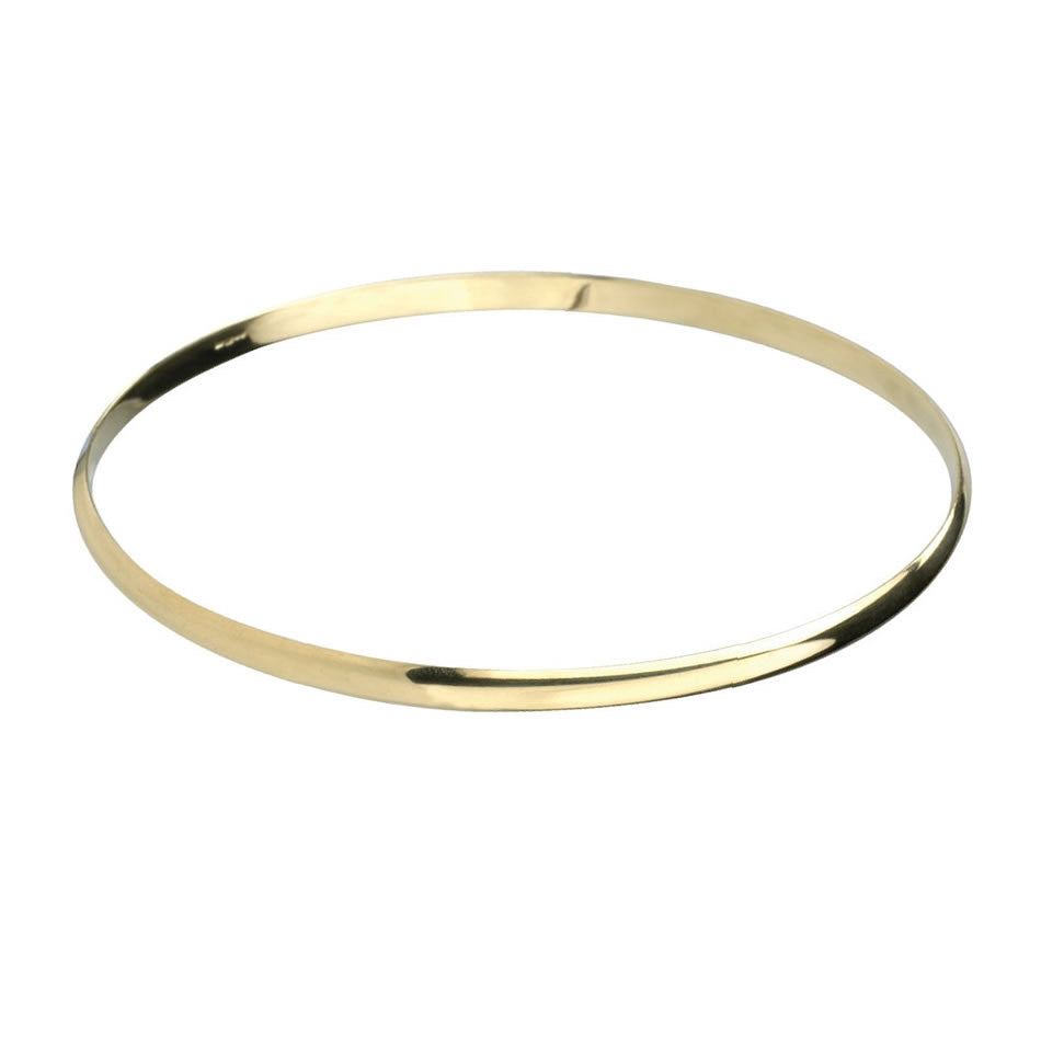 9ct yellow gold ladies classic D-shaped polished gold bangle bracelet measuring 3mm. This 9ct solid gold bangle has a contemporary look that will never date. This gold bangle looks elegant worn alone or can be matched with other bangles and bracelets to create any look you desire to keep your look fresh. A wonderful gift or well earned treat for anyone who loves wearing gold.