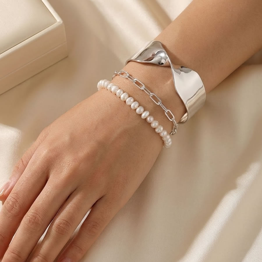 A chic ladies' wide cuff bangle bracelet, beautifully crafted in the polished sterling silver. Sensual curves of twisted silver ribbon give this silver bangle unique and stylish look. Solid and heavyweight, this must-have bangle is versatile enough to wear dressed up or down and adding a new dimension to every outfit. One size open bangle.