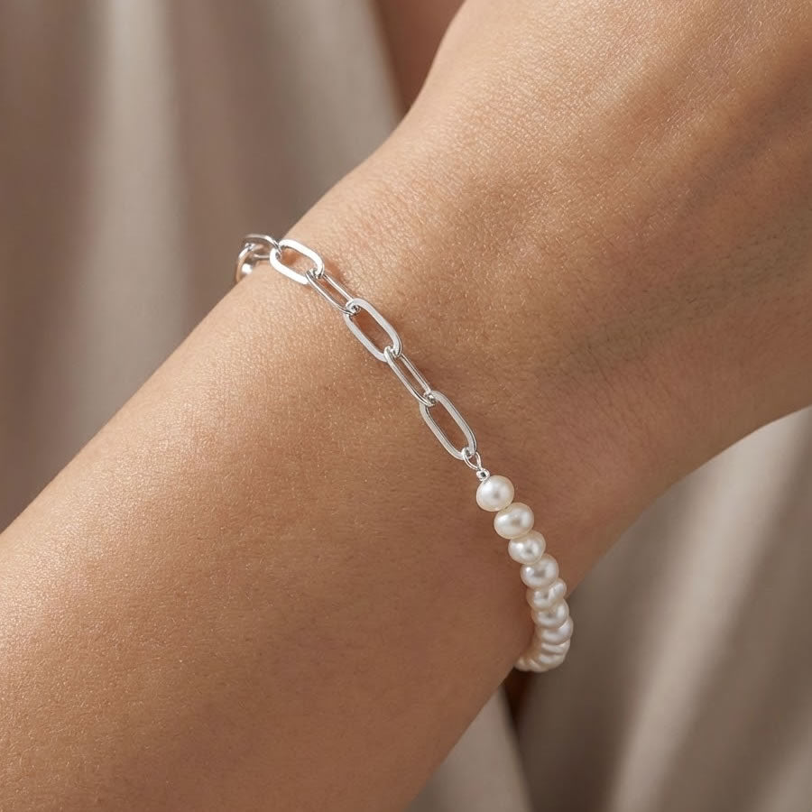 The simplicity of this pearl bracelet makes it a perfect piece to add to any outfit. Crafted in sterling silver with 3mm freshwater pearls and a delicate oval chain design creating a simple and minimalist feel.