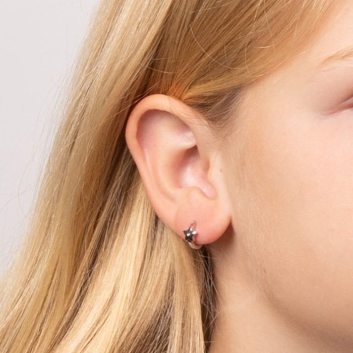 Children's Silver Diamond Star Huggie Hoop Earrings
