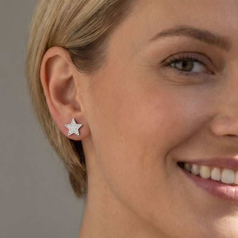 Elevate your everyday jewellery collection with these sterling silver star stud earrings, featuring brilliant cubic zirconia stones that capture and reflect light beautifully. The classic star design offers timeless appeal, while the secure stud fastening ensures comfortable all-day wear.