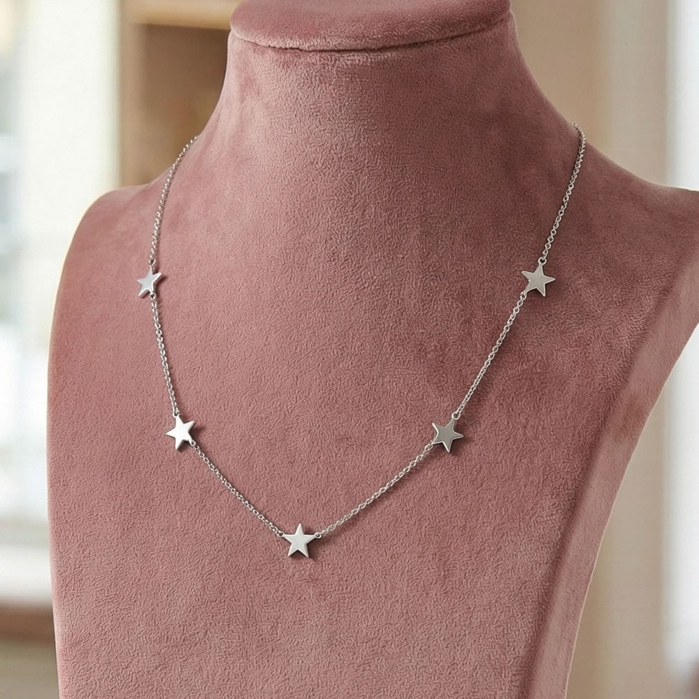 Silver Line of Stars Necklace